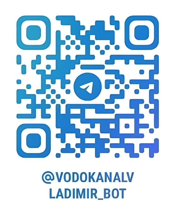 Найти чат-бот в канале МУП "Владимирводоканал" в мобильном мессенджере Telegram можно по нижерасположенному QR-коду или создав запрос в поисковой строке.